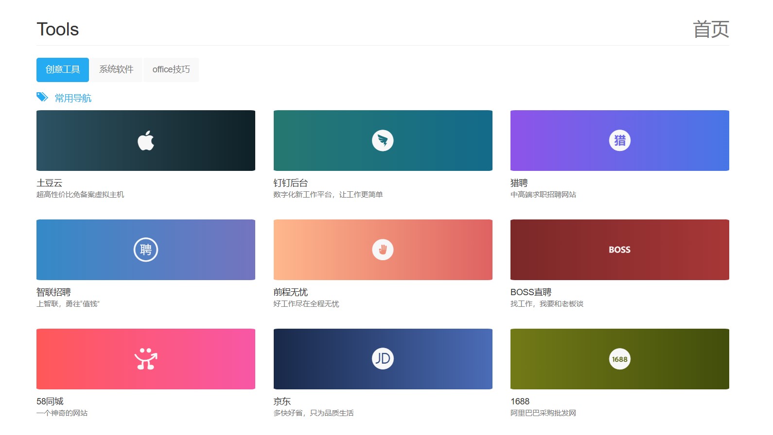 源码介绍渐变背景的网址导航源码,CSS中添加了50种渐变色可供调用,boostrap响应式,鼠标hover效果,比较好看,适合做资源分享类网址导航快捷页面。