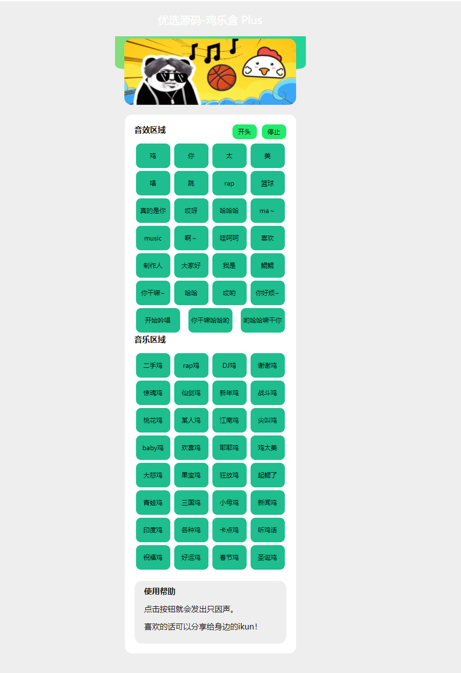 在线鸡乐盒PHP网页版源码,跟软件版差不多免去安装步骤,包含鸽鸽音乐还有恶搞的bgm,开源无加密所有外部文件全保存在本地了,有的mp3文件大建议放在cdn库加载会快些。